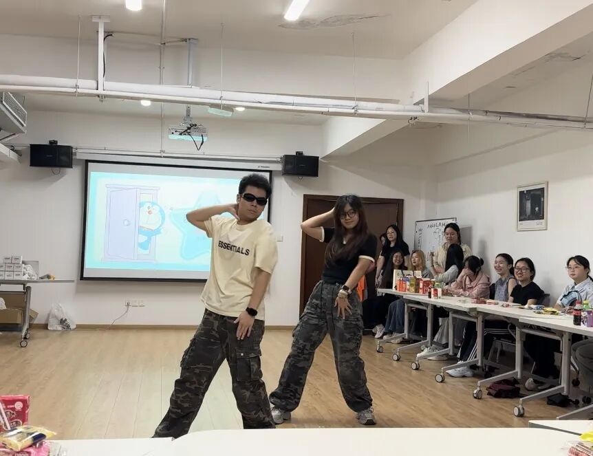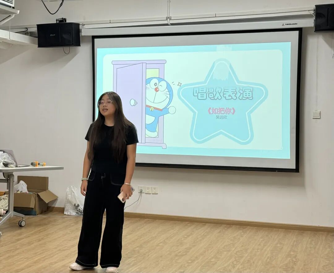 在班长分享的间隙,舞蹈、歌曲、魔术等表演穿插其中,为活动增添艺术氛围与趣味性。舞蹈表演灵动欢快,歌曲演唱温暖励志,魔术表演奇幻精彩,有力地活跃了现场氛围。“炸弹猜词”小游戏也同步开展,独特的规则使现场互动频繁,氛围热烈。