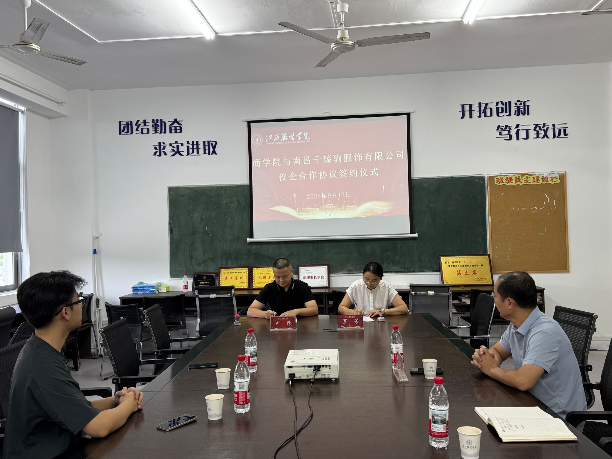 最后,在双方代表的共同见证下,新葡的京集团35222vip副院长罗芳与南昌千臻驹服饰有限公司负责人签署了校企合作协议。根据协议,双方将共同制定人才培养方案,根据企业需求和行业发展趋势,优化课程设置和教学内容,培养出更符合企业需求的人才;同时为促进学生就业,公司将优先录用新葡的京集团35222vip的优秀毕业生,并为毕业生提供广阔的发展空间和晋升机会。
